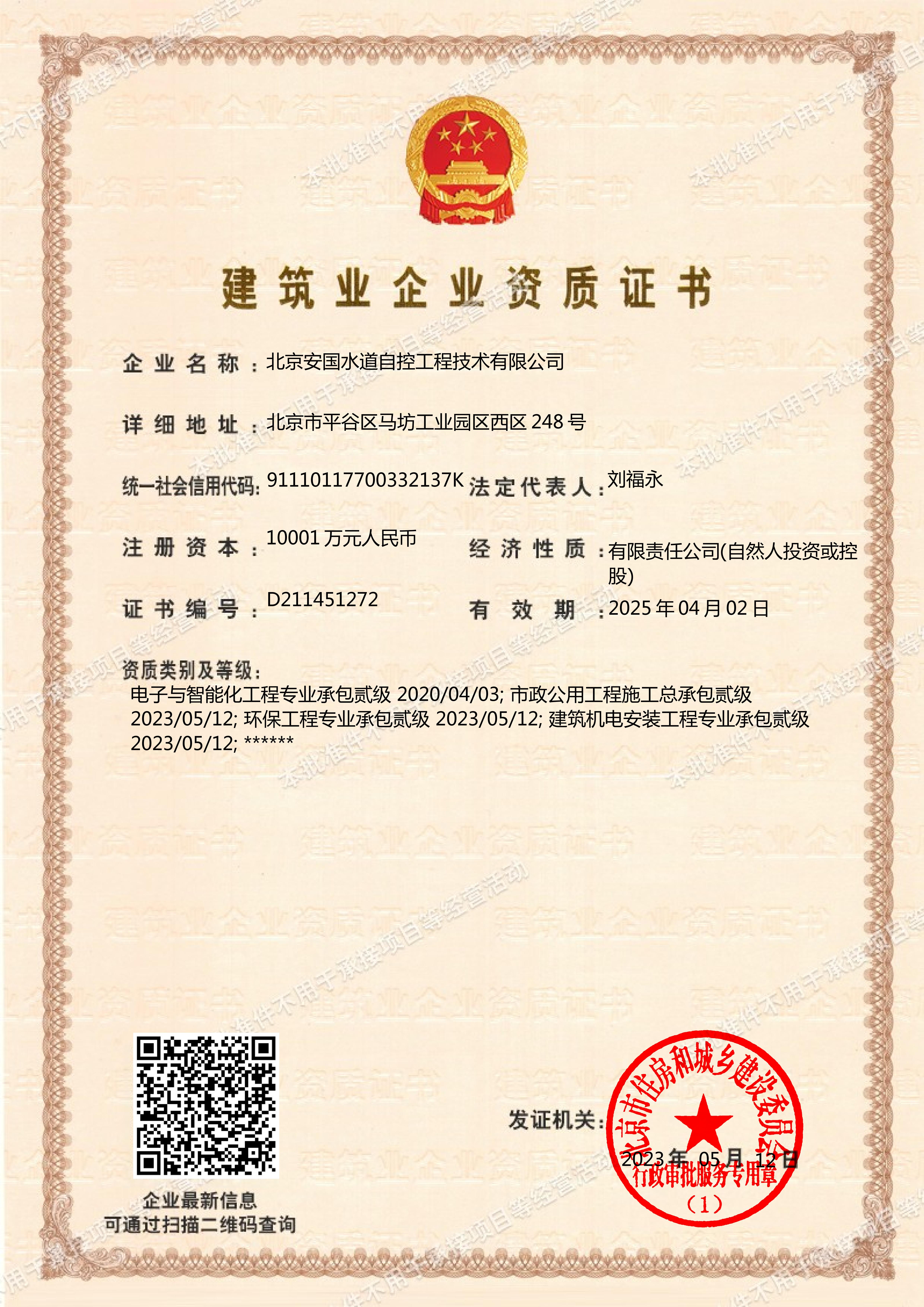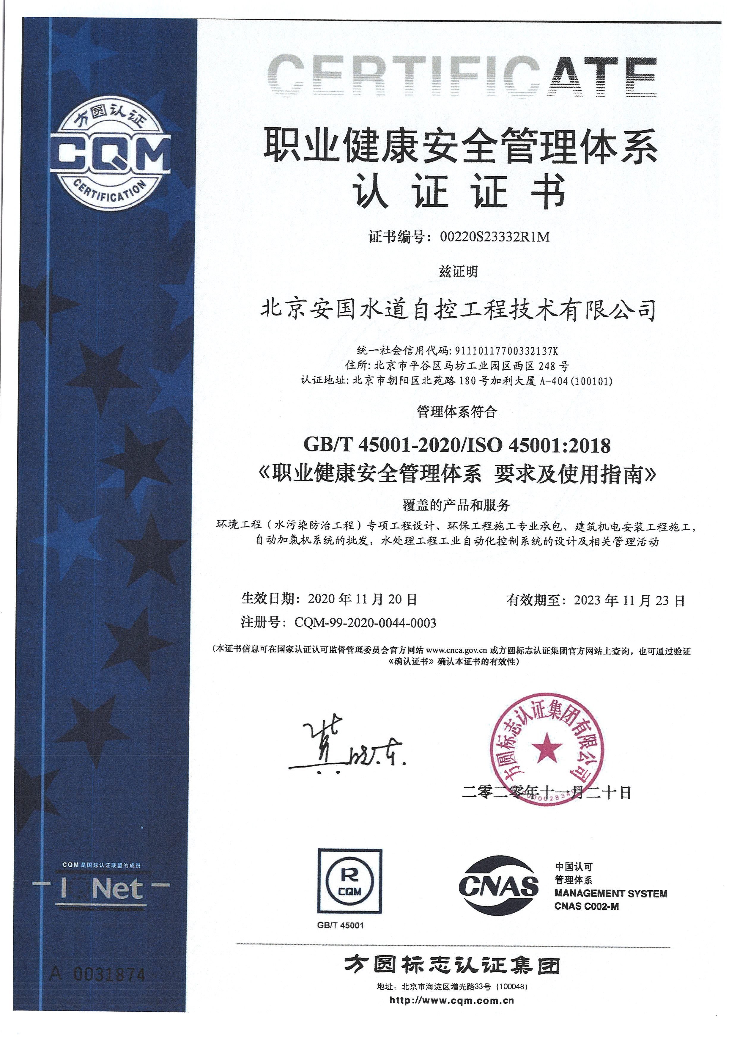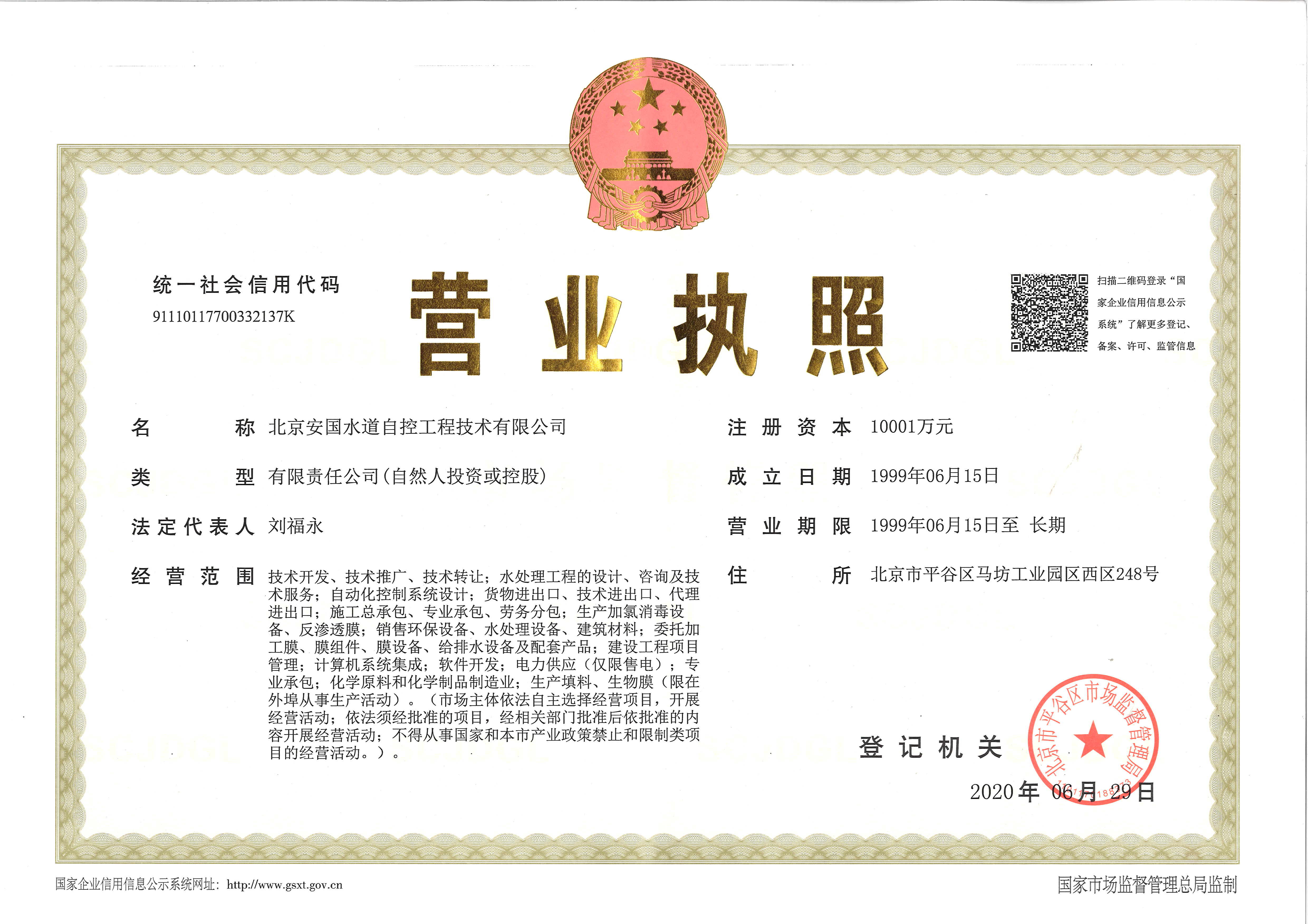 北京安國水道自控工程技術(shù)有限公司2015年入駐中國給水排水品牌委員會